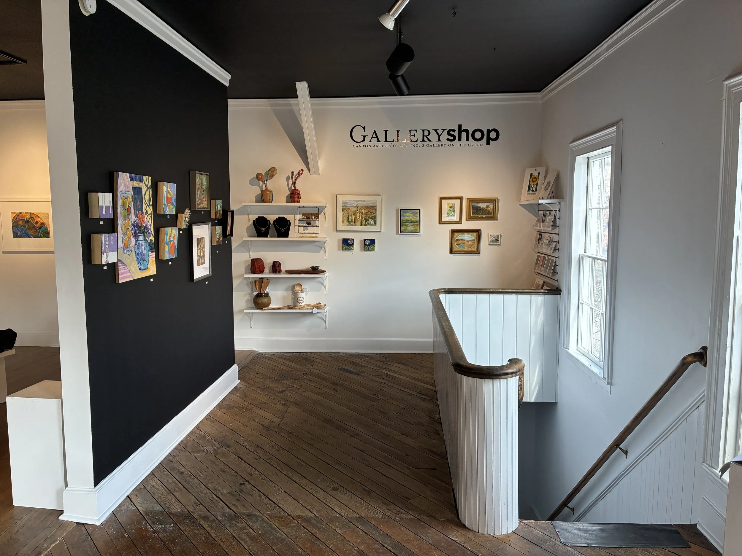 The Gallery Shop features original artwork, giclee prints, artists’ greeting cards, jewelry, small ceramic pieces and other items. The shop is open Friday-Sunday from 1-5pm. Visit the shop at the top of the stairs on the second floor.