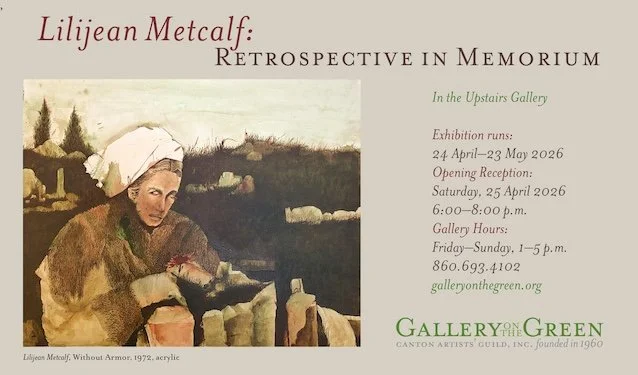 The Lilijean H. Metcalf Memorial Exhibit, in the Upstairs Gallery, is a retrospective honoring the legacy of a Connecticut artist who painted primarily in watercolor but with an intensity and depth of feeling one does not expect to find in this medium. Her carefully drafted realist landscapes and portrait paintings, often rendered in quiet, somber palettes, carry a gentle yet powerful sense of yearning and critics described her work as possessing “an unusual humanist quality.”
